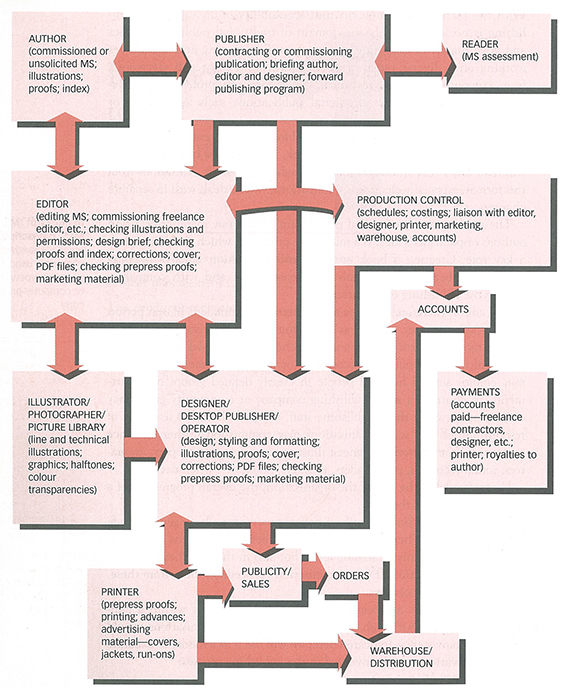 On page 4 of The Australian Editing Handbook is a schematic diagram of the typical set of relationships and flows within a publishing organisation. You can see that the box representing the editor is placed in a structurally central role � more arrows emanate from or enter the editor's box than any other point in the process.